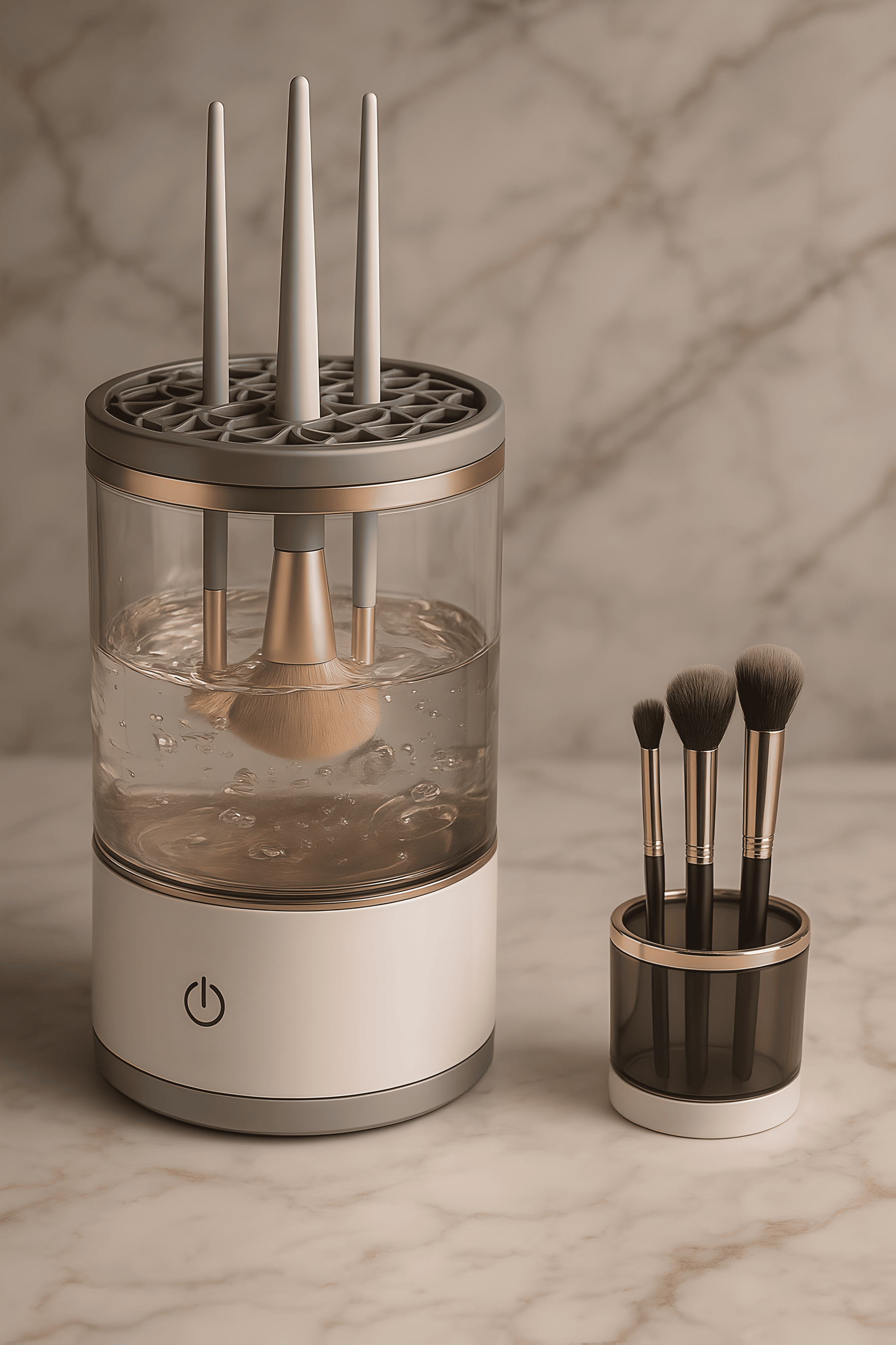 The Briselle LuxeBrush™ combines efficiency and elegance: gentle on bristles yet powerful enough to remove every trace of makeup. With universal compatibility and easy one-button control, it saves time, extends brush life, and ensures every application feels fresh and flawless.